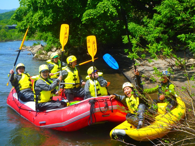 ニセコの武田屋ラフティングは、なんと写真無料!、更に希望の小船!?でも遊べます。2歳3歳の子供からお年寄りまで参加できるやさしいコースがおすすめ♪尻別川を満喫できるラフティングコース♪春の雪解け期間に楽しめる激流ラフティングコースが人気♪